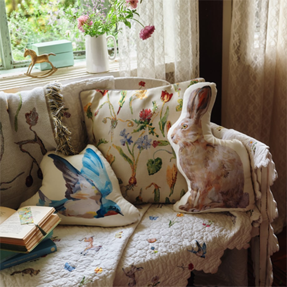 ダイカットクッション(ツバメ/野うさぎ) 各¥3,850