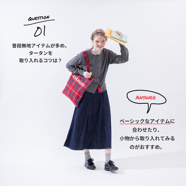 いつものワードローブにタータンアイテムを1点取り入れるだけで
