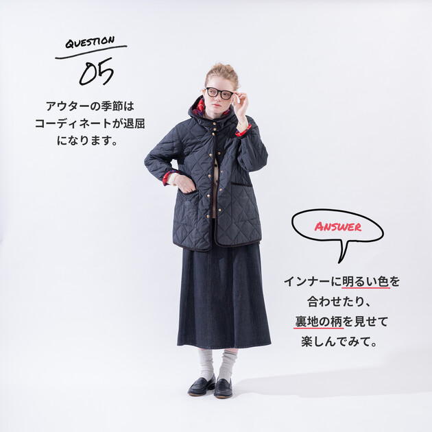 気分に合わせて重ね着で見え方を変えるのもおすすめ。