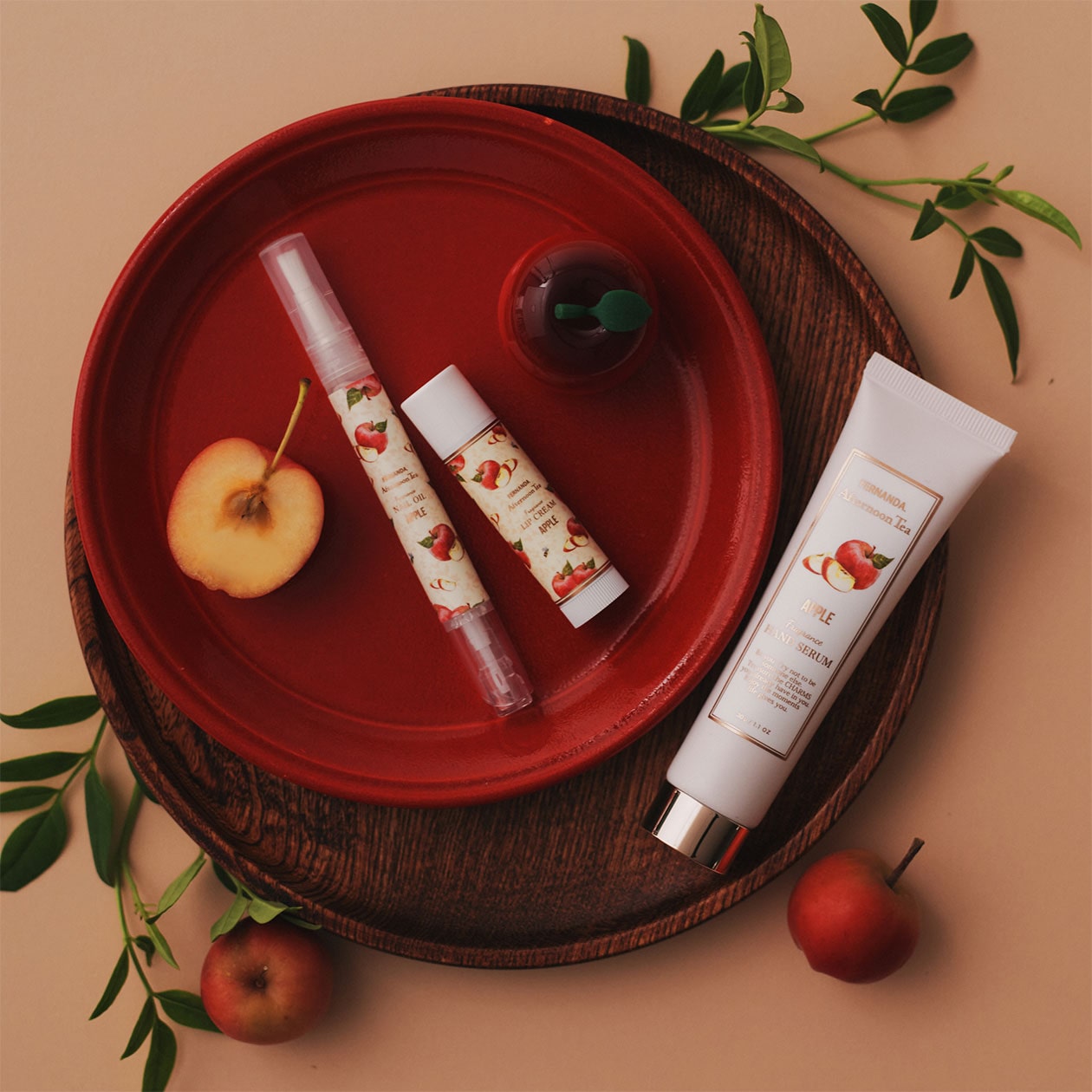 フレッシュなリンゴの香りに癒されながら、ボディケアを楽しんで。みずみずしいリンゴの香りが広がるフェイスパックや、お風呂上りや乾燥を感じたときにボディミストをシュッとひと吹きして、保湿しながら気分もリフレッシュ!
