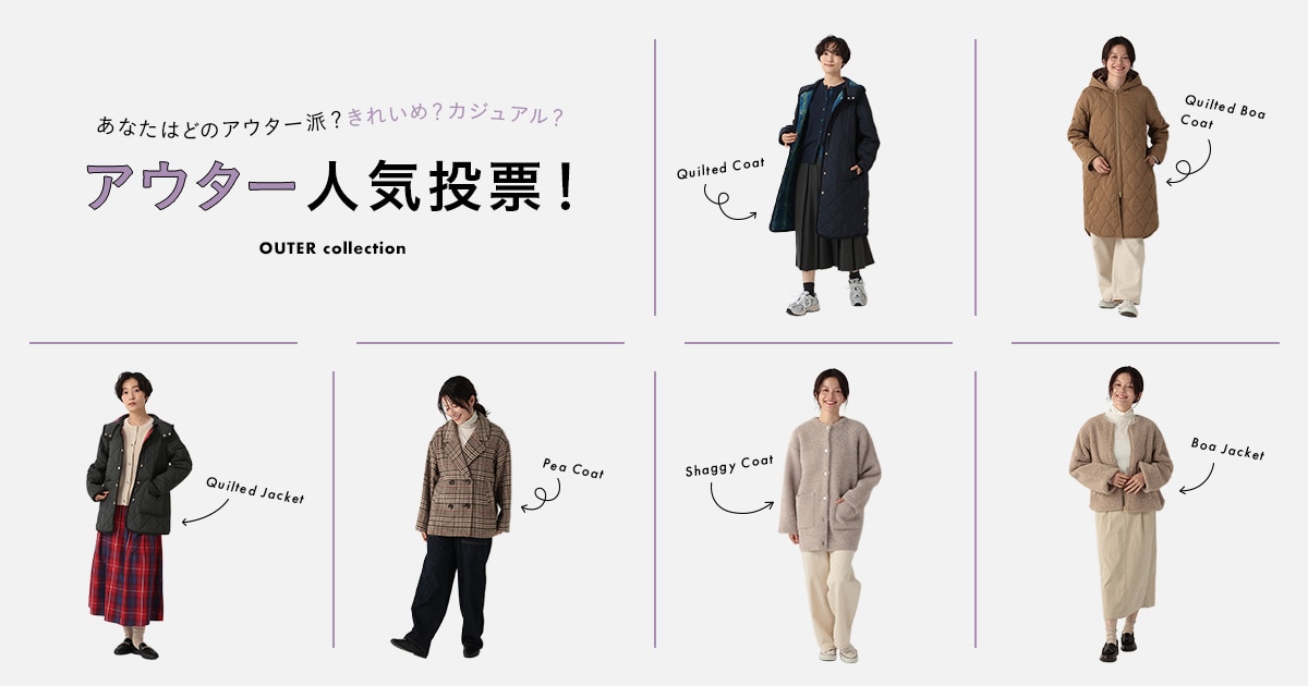 この冬のスタイルに合うアウタータイプ診断で楽しくチェック。診断のあとは、気になるアウターを自由に選んで投票!この冬の“推し”アウターを見つけて、冬のおしゃれをもっと楽しみましょう。