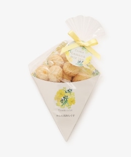 レモン風味の生地に、みかんとりんごのミックスジャムをのせて丁寧に焼き上げました。「ほんの気持ちです」のメッセージ入りで、職場やご挨拶のお配りギフトとして気軽にお渡しいただけます。