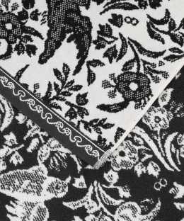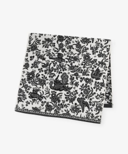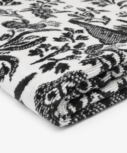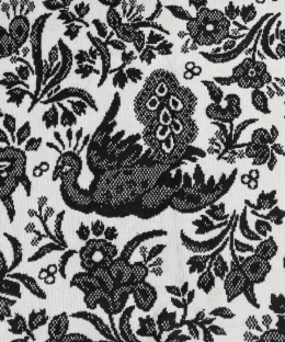 こちらは1913年に発表された歴史あるパターンをブラックで表現した「Black Regal Peacock(ブラックリーガルピーコック)」柄で優雅な孔雀が描かれています。