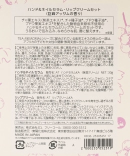 サイズ | 【箱】縦13cm/横10cm/厚み2.7cm 【ハンド&ネイルセラム】縦12.2cm/横3.6cm/厚み2.4cm/内容量30g 【リップクリーム】高さ6.8cm/直径1.7cm |