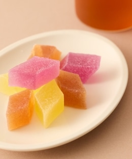 素材 | 砂糖、水あめ、寒天、紅茶エキスパウダー(紅茶、デキストリン)、グレープフルーツ果汁、濃縮ぶどう果汁(巨峰)、リキュール/香料、着色料(アカキャベツ、黄4)、酸味料 |