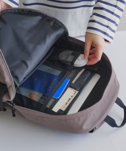 整理しやすい内部メッシュポケットや、さっと取り出せるフロントポケット付きなので、細かいアイテムもすっきり収納できます。