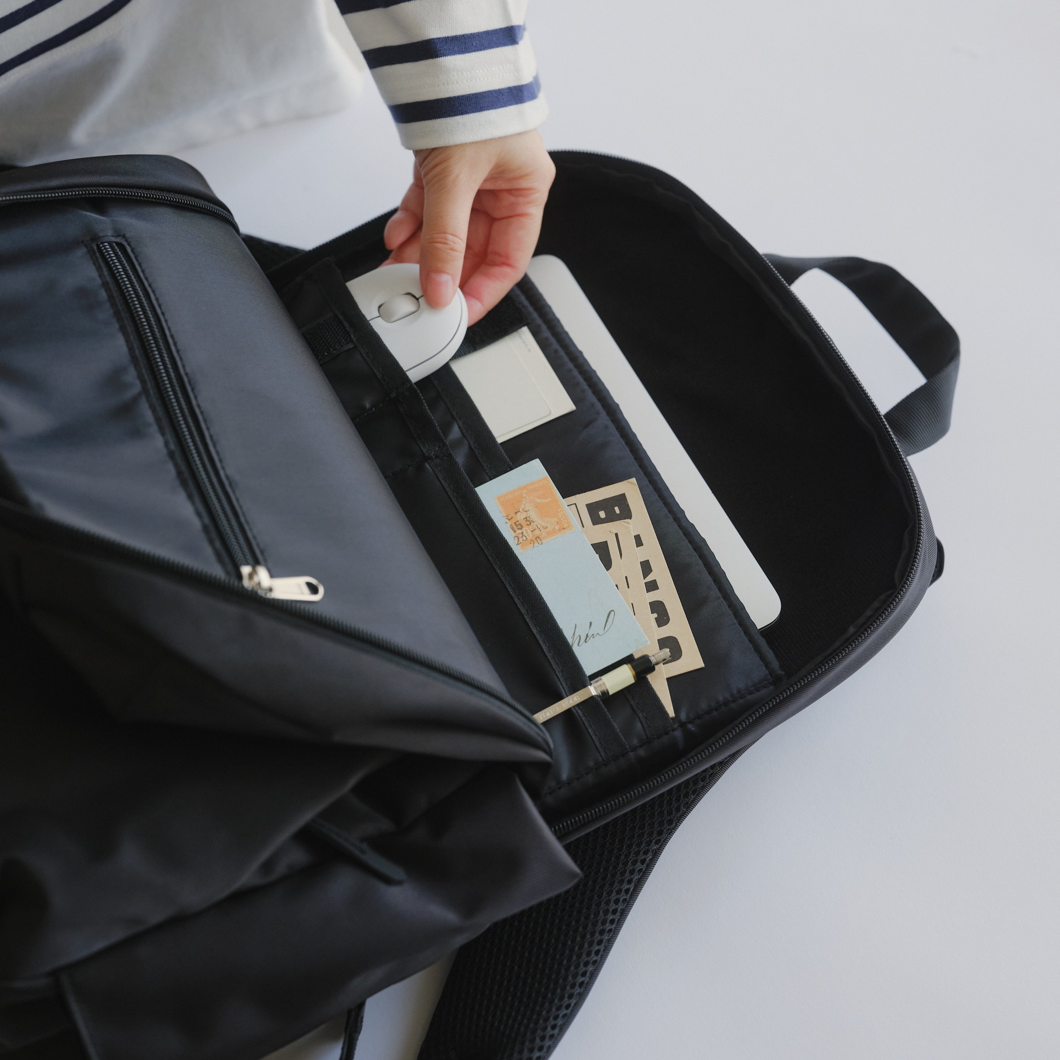 ・内部PC収納にも小分けポケット付きでマウス等の小物の整理がしやすい