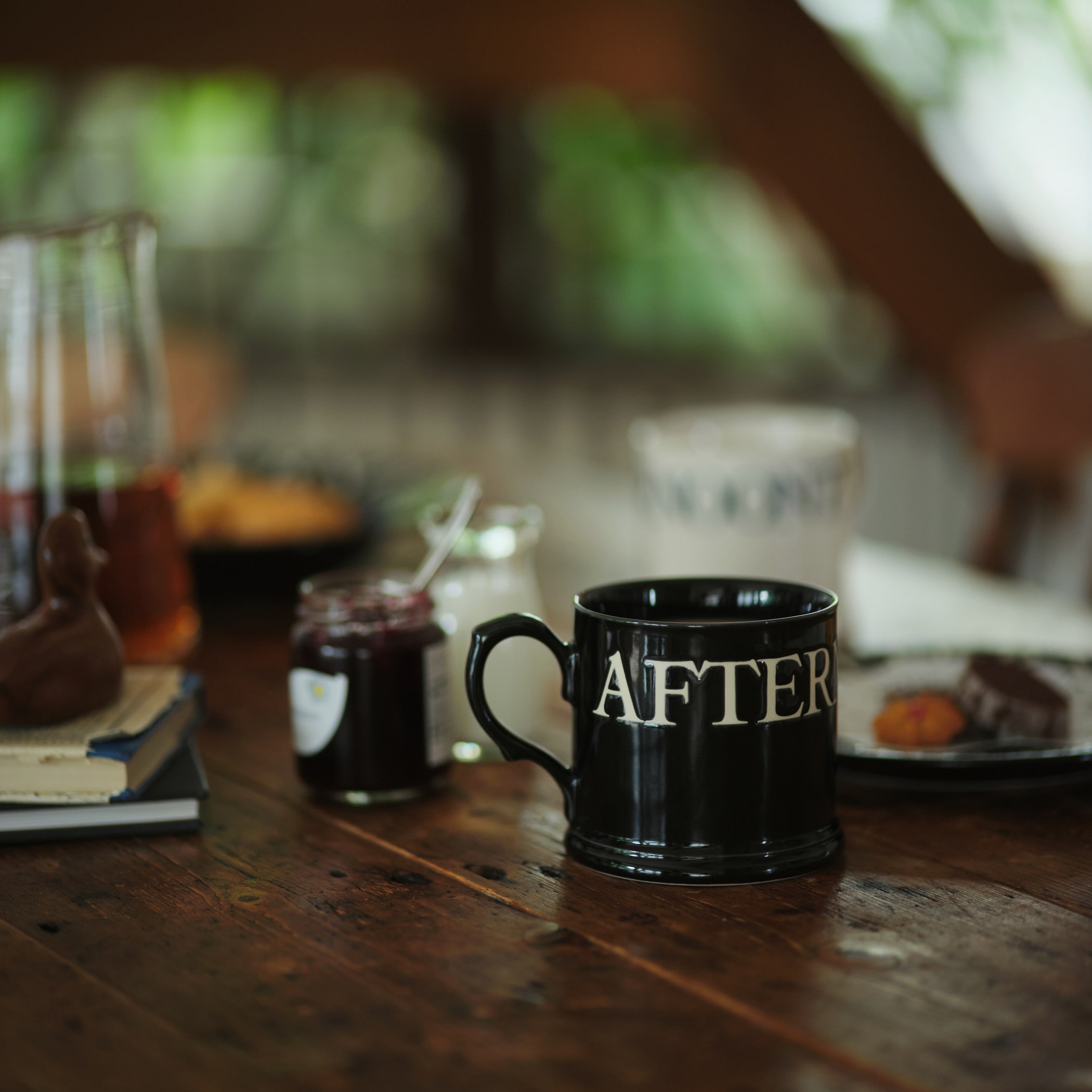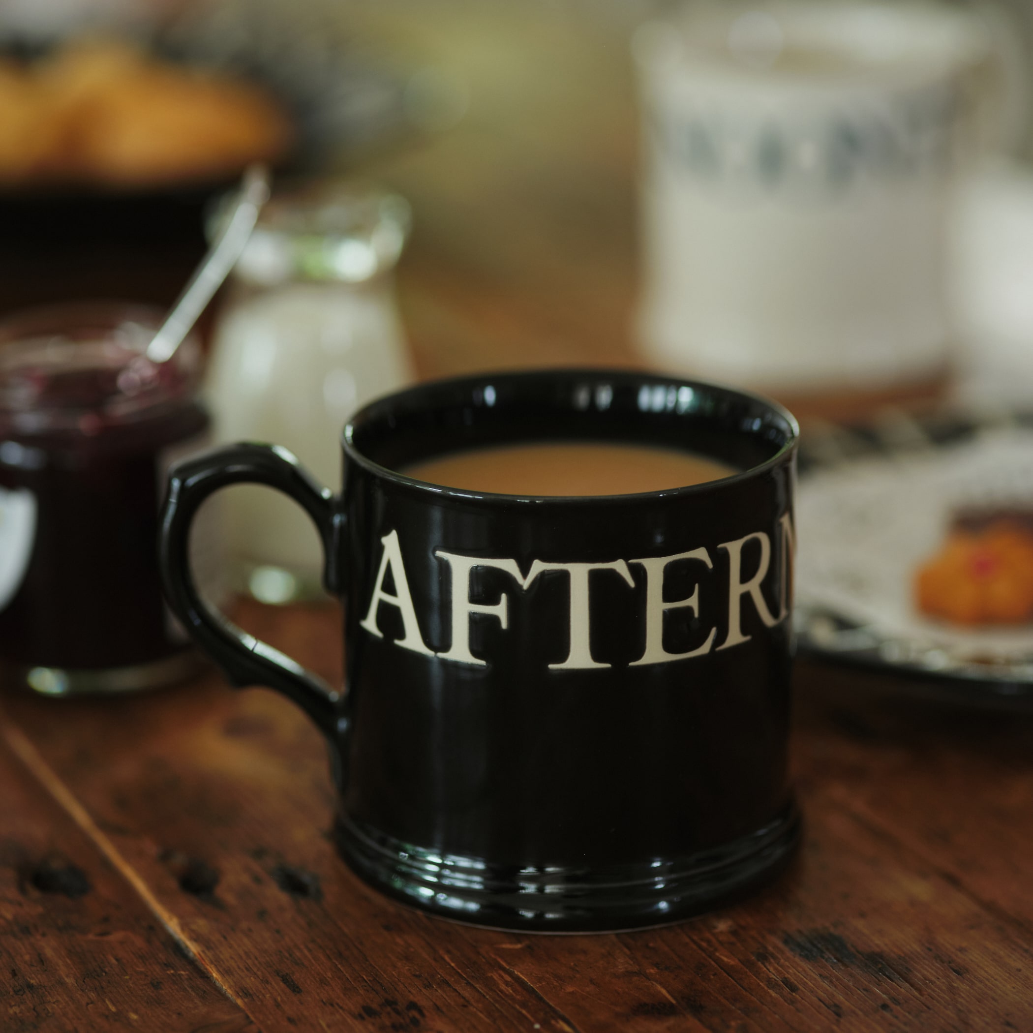 マグカップは、紅茶にもコーヒーにもあう、底部に重さのあるシルエット。程よい重量で安定感があります。たっぷりの紅茶をいれて、焼き菓子と一緒に楽しむのもおすすめ。