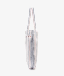 毎日の生活に寄り添う、クリーンなストライプ柄のトートバッグです。