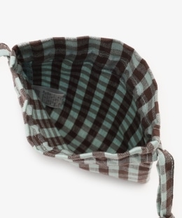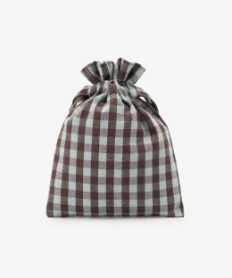 先染めのギンガムチェック生地を使用した巾着ポーチです。