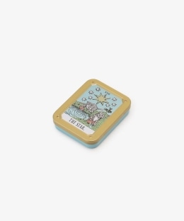 星とネコが描かれている、タロットカード風のミニキャンディー缶です。