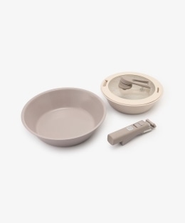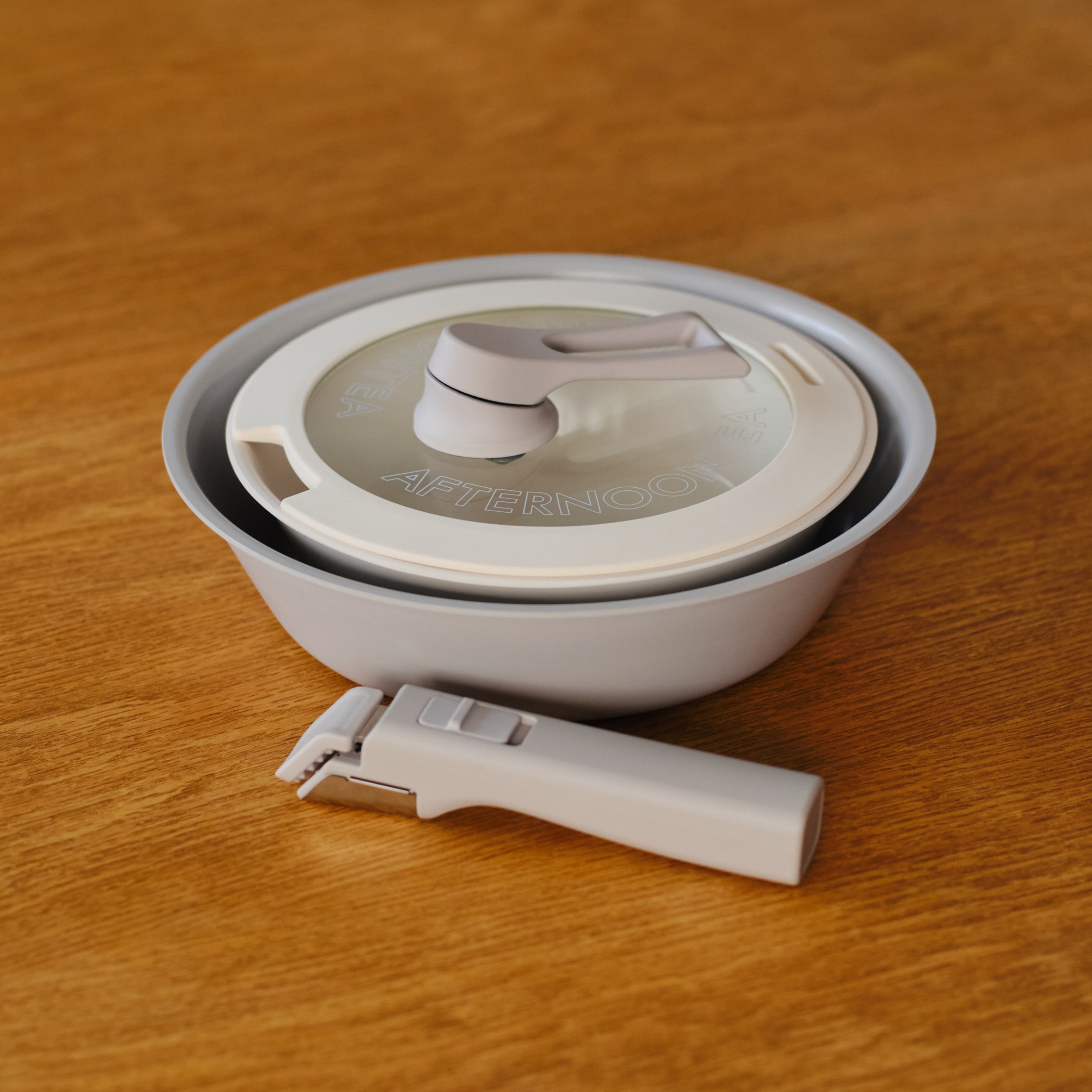 調理からサーブまで、これひとつ。 機能的なフライパンセットは、まるでお皿のような美しいデザインで、調理後そのまま食卓にサーブできるから、熱々のお料理をそのまま楽しめます。