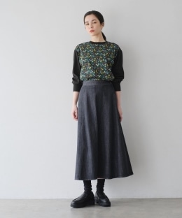 デイジー、ブルーベル、ナデシコなどを色鮮やかに描いており、見ているだけで気分の華やぐアイテム。カットソー生地をドッキングすることにより、見た目の美しさと快適な着心地を両立しました。やわらかく伸びのある素材感で、動きやすさも兼ね備えています。1枚でさらっと着るだけで映えるデザインは、忙しい朝のコーディネイトにも便利です。同じシリーズのブラウスなども展開しているので、ぜひ合わせてチェックしてみてはいかがでしょうか。