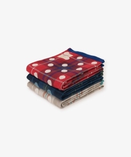 ドット柄などを組み合わせて、上品かつ遊び心のあるデザインに仕上げました。サイドにあしらった織ネームがアクセントになっています。やわらかいガーゼ素材を使用しており、使い心地がよいのも魅力です。存在感のある見た目で、使用するたびに楽しい気分になりそう。同じシリーズのミニタオルもご用意しているので、ぜひセットで揃えてみてはいかがでしょうか。ご自宅用にはもちろん、これから新生活を迎える方へのギフトにもおすすめです。