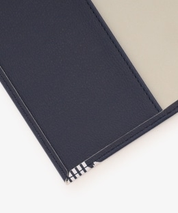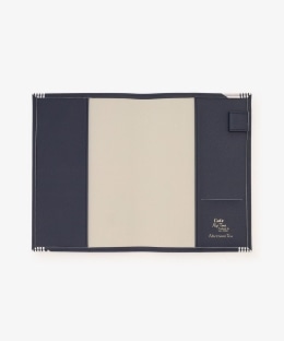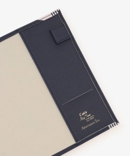 毎年人気のコラボレーションアイテムを今年は落ち着いたネイビーカラーで大人っぽくデザイン。表地にナチュラルなシボ感のある合成皮革を使っており、高級感のあるなめらかな触り心地になっています。A5サイズ対応で、内側には便利なペンホルダー付き。ブックマーカーなどを挿しておける平行状のスリットも付いています。ひとまわり小さいB6サイズもご用意しています。