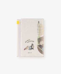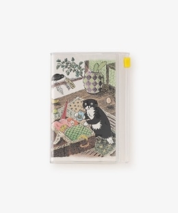 手のひらサイズのコンパクトな大きさで持ち運びやすく、日常使いにぴったりなのがポイントです。カバーは韓国人気アーティストのチェ・ヨンジュが描いた絵本「子猫のモー」の世界をデザイン。表紙側にはファスナーポケットが付いており、シールや小さいものを入れておくのに重宝します。