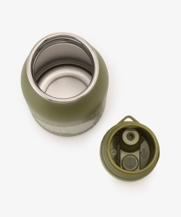 軽量で衝撃に強いステンレス素材を使用し、お子様用としてもおすすめなアイテム。スパウト(飲み口)は90度まで立ち上げられるため、飲むときにボトルを傾けやすいのもポイントです。上部には飲み口をスムーズに開け閉めできるつまみを取り付け、使い勝手の良さにも配慮しています。