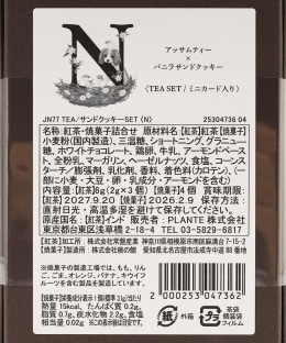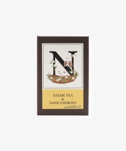 犬と鳥たちのアートを描いた、かわいらしいデザインの貼り箱を使用しました。スマートフォンケースの裏に入れて楽しめる、同じ絵柄のミニカードも入っています。ぜひお気に入りのカップなどを用意して、ほっと安らぐティータイムを過ごしてみてはいかがでしょうか。ご自身用にはもちろん、「N」のイニシャルが入る方へのギフトとしてもおすすめです。