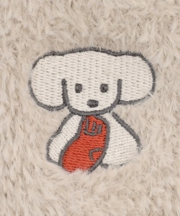 甲部分には靴下をくわえた、かわいらしいいぬのモチーフをワンポイントで刺繍しました。
