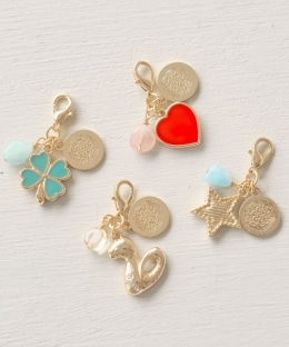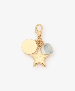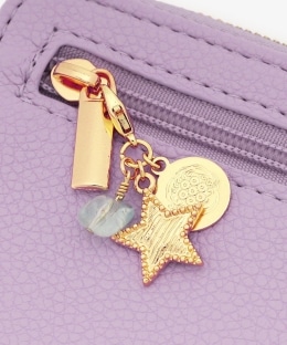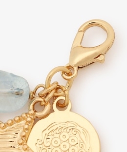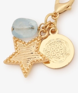 天然石とそれぞれの象徴的なモチーフを組み合わせており、日常生活のさりげないお守りになる1品 。海が生命の源であることから、豊かさや幸福をもたらすとされている「アクアマリン」を使用しました。スター型のオリジナルデザインもかわいらしく、幸運を上げたい方におすすめのアイテムです。同シリーズのお財布もご用意しており、背面ポケットの引手部分にチャームを付けることで、自分らしいカスタマイズをお楽しみいただけます。