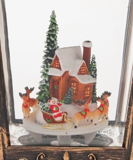 トナカイが引くソリに乗った、かわいらしいサンタクロースをモチーフにしました。底面のスライドスイッチで簡単にON/OFF操作ができ、中の液体と一緒にかき混ぜられたラメがキラキラと幻想的に輝きます。単3電池3本(別売)で使用できるほか、USBコードが付属しているのもうれしいところ。ぜひお好きなスペースに飾って、クリスマスの特別な雰囲気を楽しんでみてはいかがでしょうか。