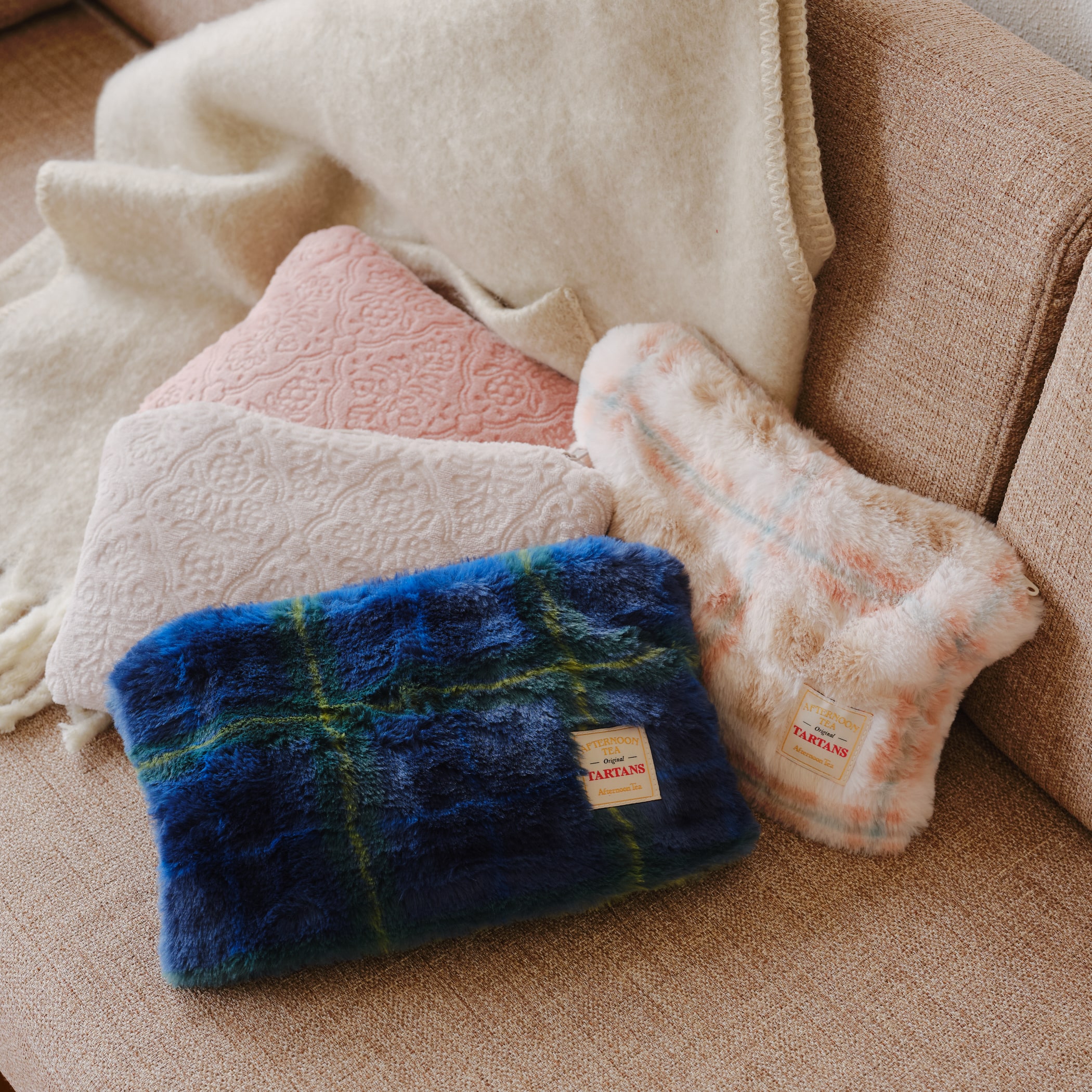 保温カバーにはなめらかなエコファー素材を使用。差ざわりもよく、カバーもさまざまなタイプをご用意しています。