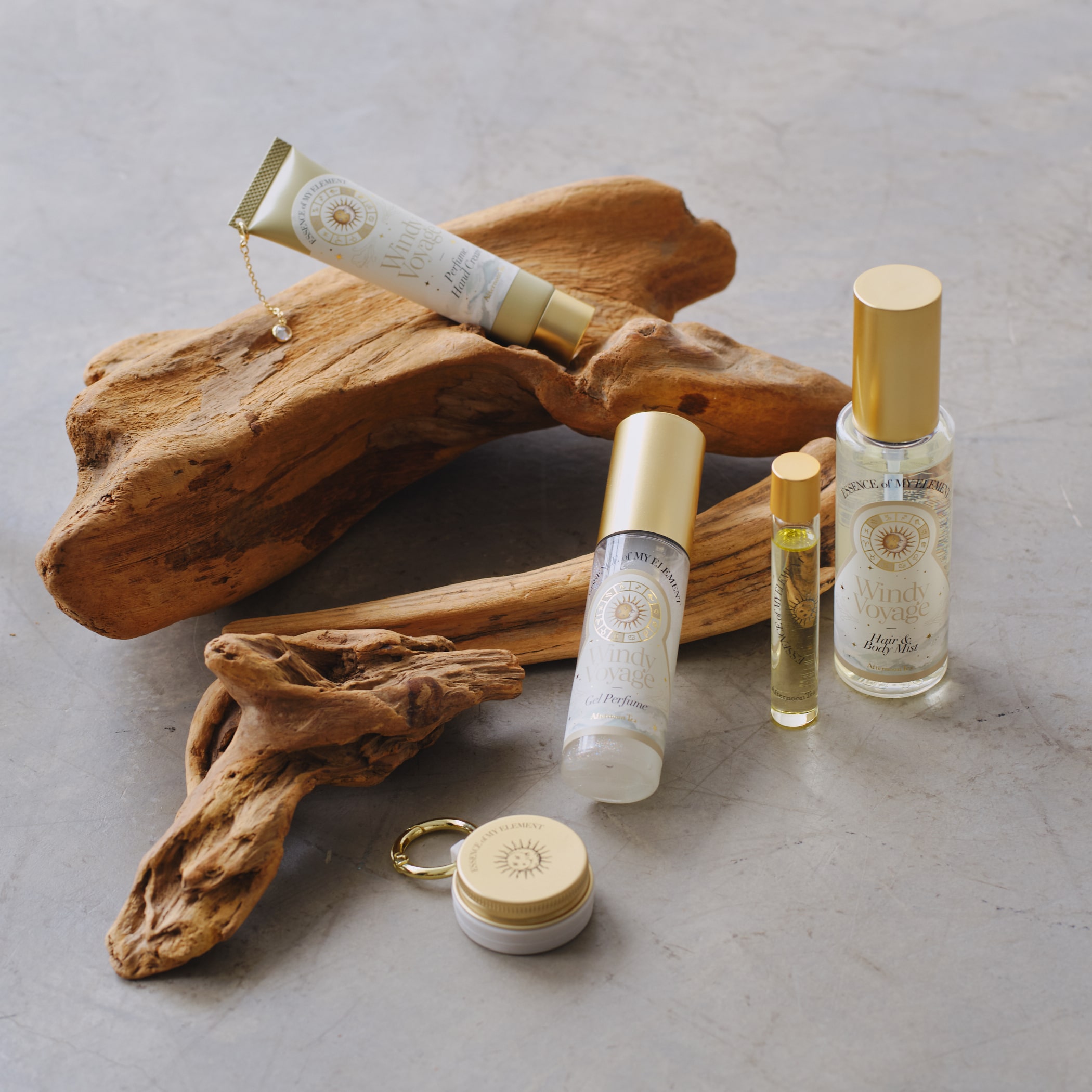 「風」のエレメントから連想される香りをオリジナルで調香しました。風のように爽やかなシトラスに、やさしいカモミールやウッディの香りが調和した穏やかな香り。そよ風に包まれるような、軽やかな心地よさです。