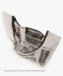 日刊予言者新聞をモチーフに、オリジナリティあふれるデザインに仕上げました。落ち着いたトーンのカラーでまとめて、使いやすさにもこだわっています。サイドにマチ幅があるため、ペットボトルなどもすっきり入れられるのが便利。折りたたんで内ポケットにまとめられるポケッタブル仕様は、ショッピングの際にかさばりにくく使い勝手もばっちりです。さらりとした生地なので滑りがよく、荷物を出し入れしやすいのがポイント。