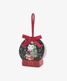 クリスマスツリーの飾りとして楽しめる、ホリデーシーズンにぴったりな1品。サンタクロースからの贈り物を待っているような動物のアートにワクワク感がとまりません。紅茶はアップルが香る上品なフレーバーをチョイス。ミルクを加えてアップルミルクティーとしてもお楽しみいただけます。裏面においしい飲み方を記載しているのでぜひお試しください。