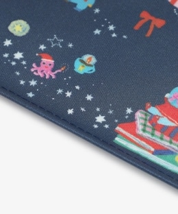 かわいらしいミニキャラクターが大集合した素敵なアートがポイントです。ラミネート加工を施しており、汚れてもさっと拭き取れるので毎日気軽に使えます。忙しい朝食やランチタイム、クリスマスパーティに合わせてぜひほっこりとしたひと時をお過ごしください。