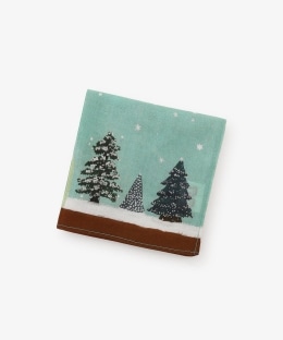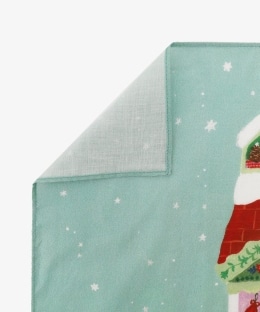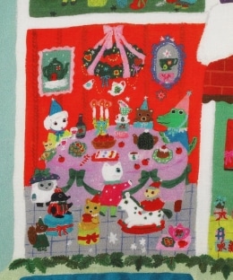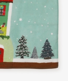 楽しそうなパーティをしているお部屋がたくさんある、おうちのアートを特別に描いていただきました。賑やかな雰囲気がクリスマス感を盛り上げてくれます。プリントタイプで細かい部分まできれいに表現されているのもポイント。大判タイプかつ薄手でやわらかいコットン素材なので、手を拭くのはもちろんランチボックスを包むのにもぴったりです。