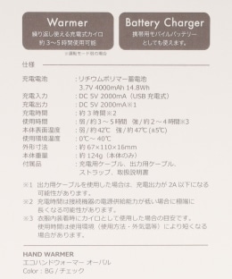 充電して繰り返し使える、オーバル型のハンドウォーマーです。