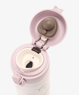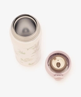 保冷と保温機能があって1年を通して使える、ステンレス製の真空二重構造が特徴。ロックリング式なので勝手にフタが開く誤作動を防止します。本体には繊細なタッチのフラワーアートをあしらい、幅広い世代の方が楽しめるデザインに仕上げました。容量500mLとたっぷり入るので通勤、通学はもちろん、1日外出する日のお供にもぴったりです。