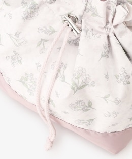 クラシカルなフラワーアートが描かれた巾着タイプのランチバッグです。