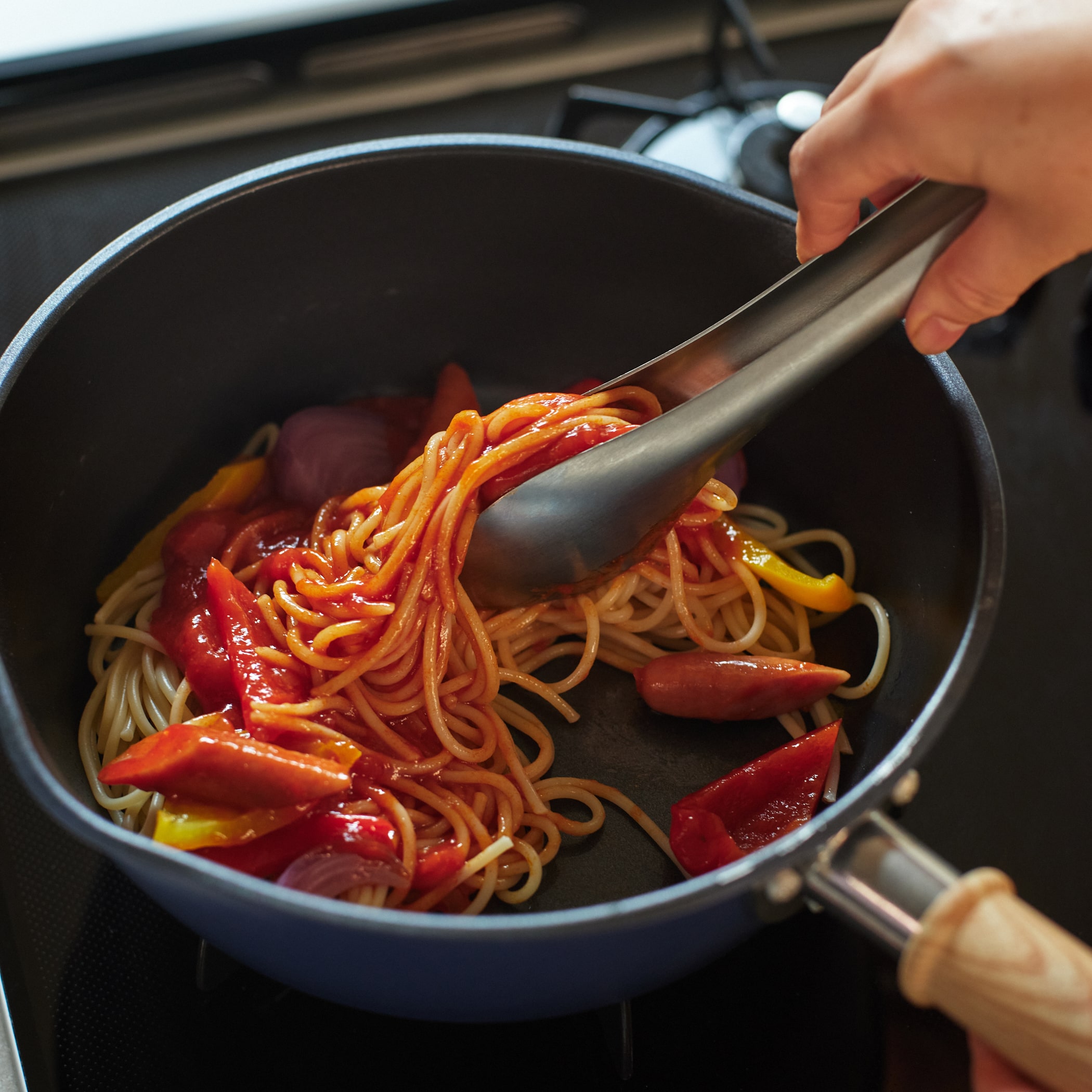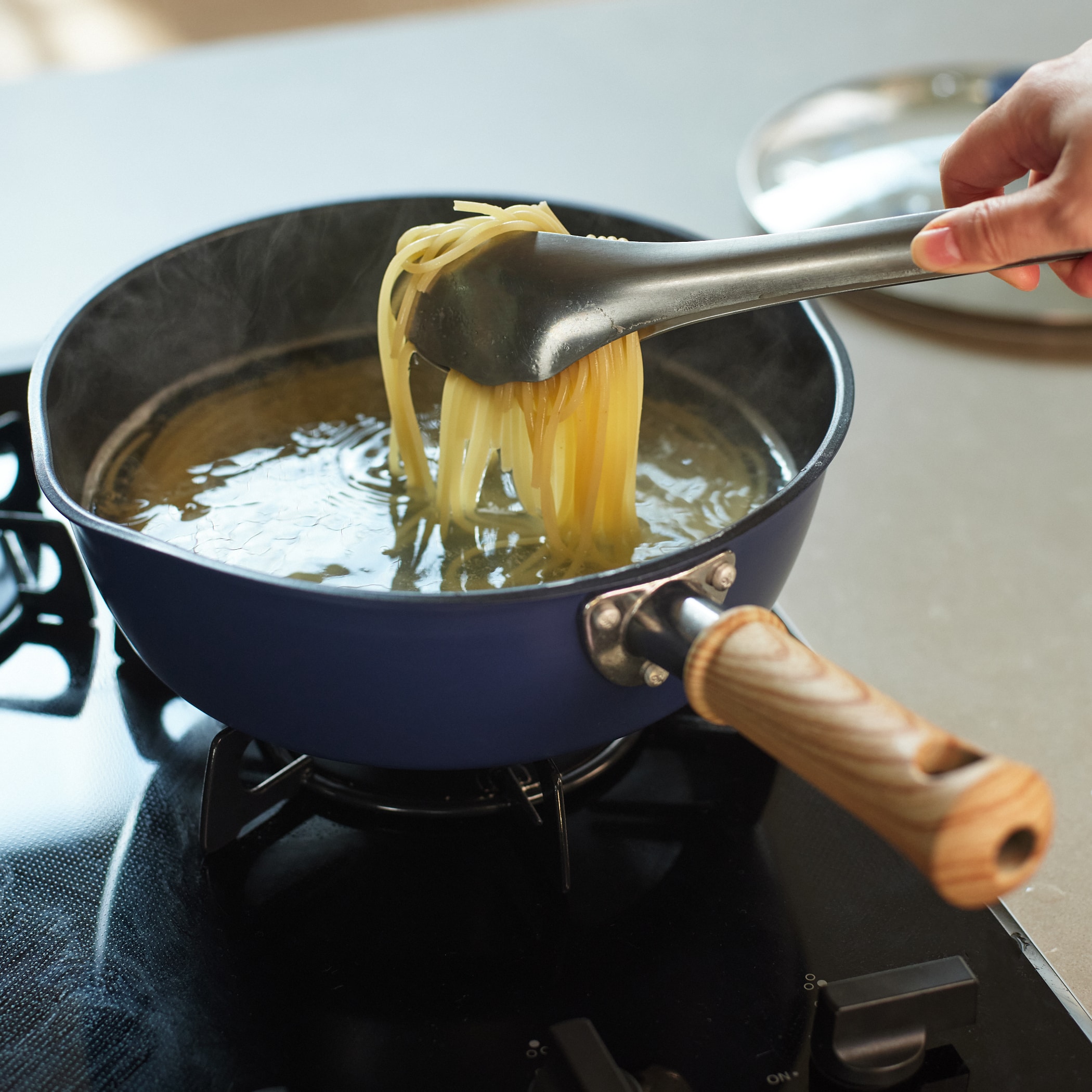 ハンドル付きのザルも付いているので、パスタなどの麺料理を茹でる際にも活躍します。