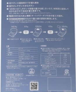 | 商品注意事項 | 付属品/取扱説明書(保証書) 使用電池/単4形乾電池×2個(動作確認用電池付) 安定所要時間(約)/3秒 オートパワーオフ(約)/4分 計量範囲/2~2000g 最小表示/2~300g以下:0.1g、300g超え1500g以下:0.5g、1500g超え2000g以下:1g |