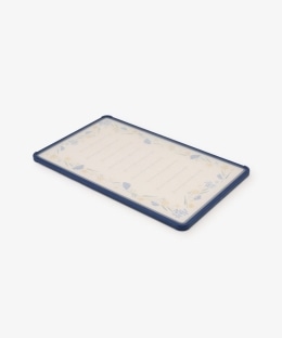 | 素材 | 外側:ポリプロピレン 縁部:熱可塑性エラストマー 芯材:発泡ポリエチレンシート 抗菌加工(縁部除く):無機抗菌剤、練込 |