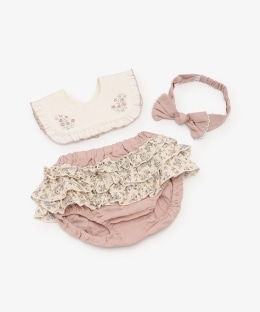 | 素材 | スタイ/表地:綿100% 裏地:綿78%・ポリエステル22% ブルマ/綿100% ヘアバンド/綿100% |