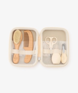 サイズ | 【ケース】縦16.5cm/横12.5cm/厚み5.5cm 【ヘアブラシ】長さ14.7cm/幅4cm 【ヘアコーム】長さ14.7cm/幅4cm 【指歯ブラシ】長さ5.2cm/幅1.7cm 【吸引器】高さ8.5cm/直径3.2cm 【ハサミ】長さ9.7cm/幅5.2cm 【爪切り】長さ8.5cm/幅3cm |