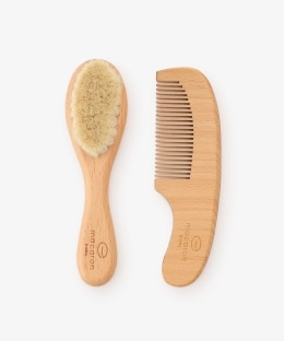 素材 | ケース:(内側)ベルベット・(外側)EVA・ポリウレタン樹脂 ヘアブラシ・コーム:(本体)ブナ天然木・(ブラシ)羊毛 指歯ブラシ:シリコーン 吸引器:シリーコン・ポリプロピレン ハサミ:ステンレス・ポリプロピレン 爪切り:ステンレス・ポリプロピレン |