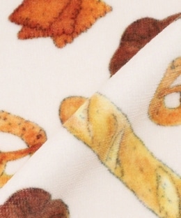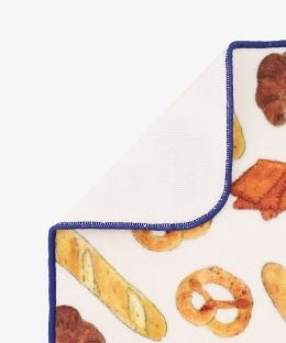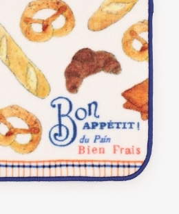 パリのティータイムや朝食にゆかりのある食べ物が描かれた、特別なアートをぎゅっと詰め込みました。デザインのアクセントと補強を兼ねて縁にはパイピングをプラス。ボトムスやアウターのポケットにもしまいやすいコンパクトなサイズなので、普段使いとして用意してみてはいかがでしょうか。