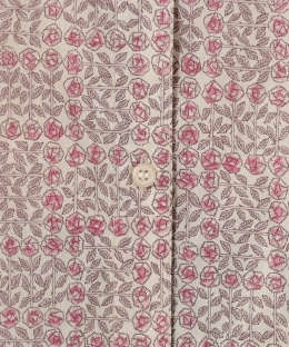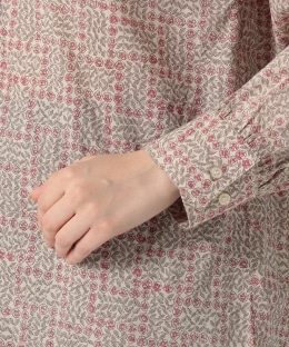 「Sleeping rose(スリーピング・ローズ)」のリバティプリントをあしらった、タナローン生地のバンドカラーブラウスです。