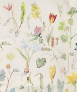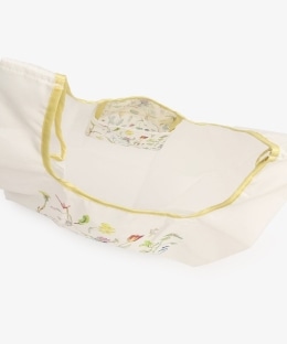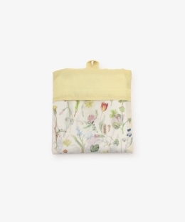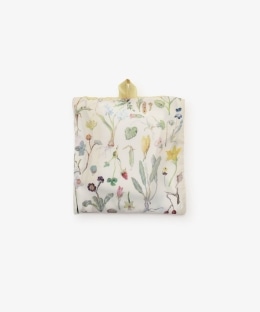 さまざまな種類の草花が繊細なタッチで描かれています。絵を綺麗に再現するために、つるっとした生地を使用。軽くて薄いポケッタブルタイプなので、どんなバッグでも持ち運びできます。普段のお買い物や荷物が多くなりがちな旅行先など、幅広いシーンで活躍する一品です。
