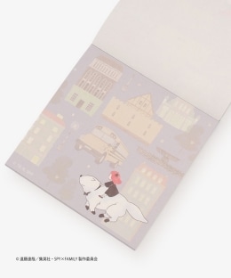 4種類の絵柄をラインアップし、実用性とデザイン性を兼ね備えたアイテム。100枚たっぷりと入っているので気兼ねなく使えるため、ちょっとしたメッセージや伝言を残したい時にも便利です。学校やオフィスなど、さまざまなシーンに持ち運んで、作品の世界観を日常に取り入れてみてはいかがでしょうか。