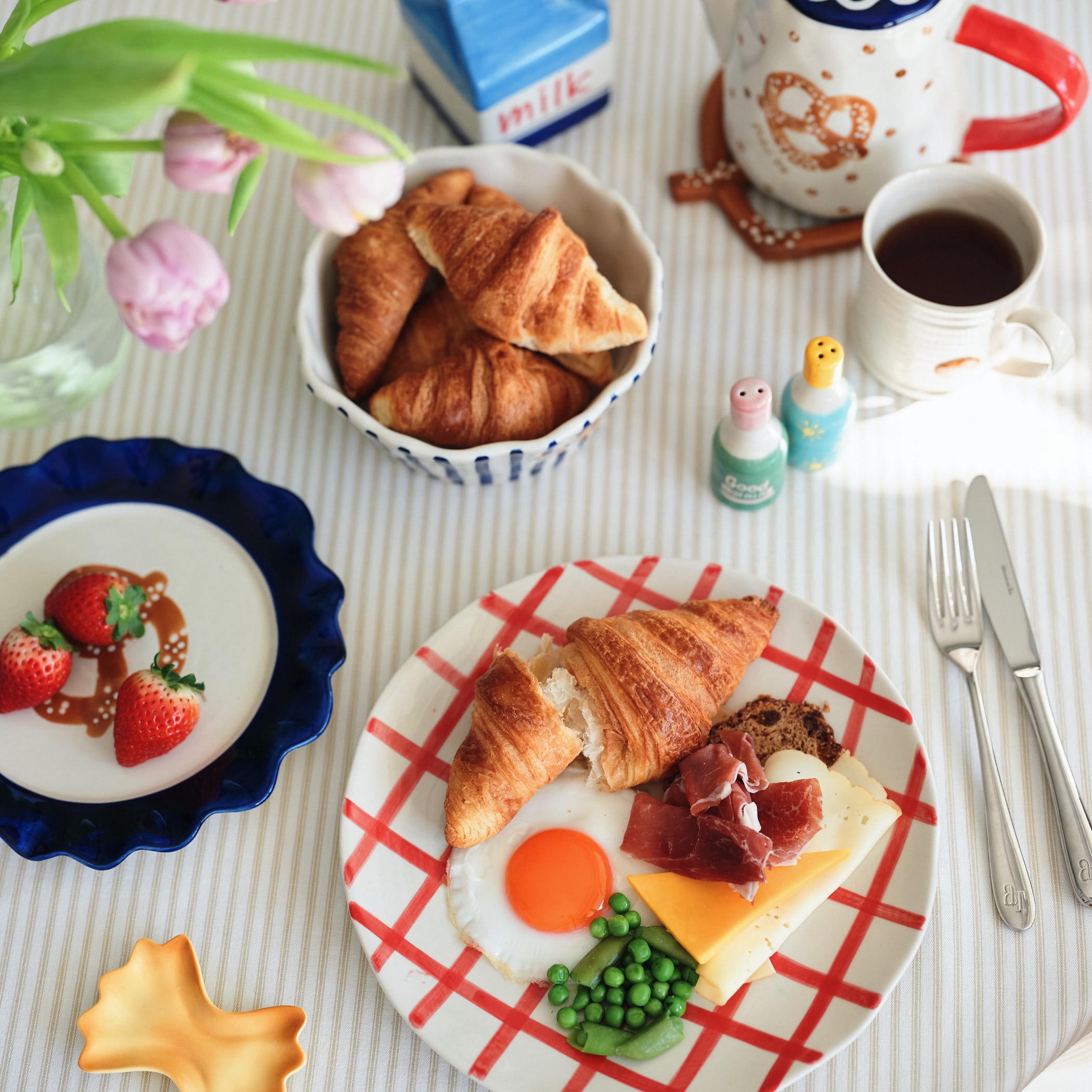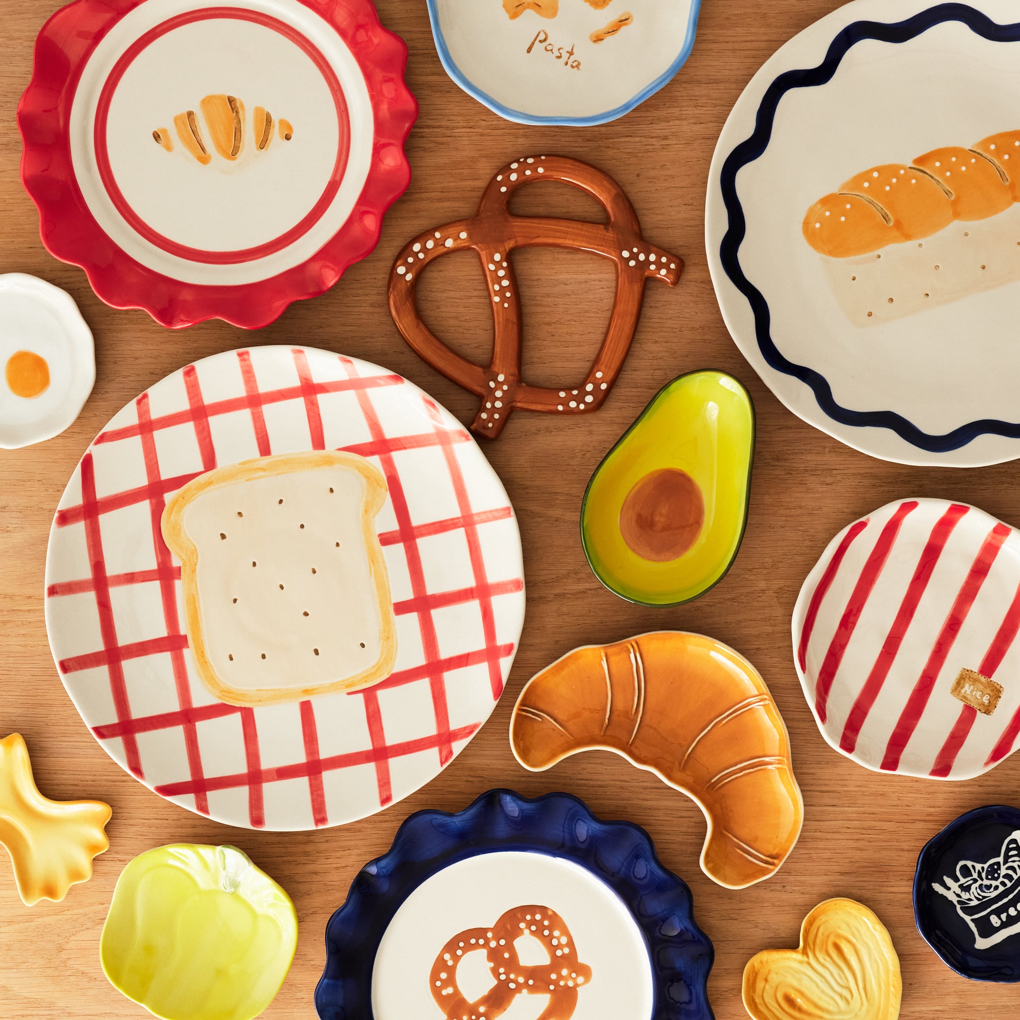 クロワッサンやプレッツェルなどをモチーフにしたダイニングアイテムは、見ているだけでワクワクした気持ちにさせてくれます。
