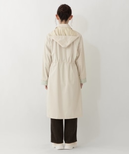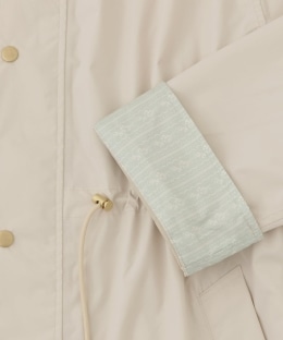 普段の洋服に合わせやすい、シンプルかつ上品なデザインが特徴。ウエストのドローコードを絞ることで、お好みのシルエットに調節ができます。フードはスナップボタンで取り外しが可能です。収納袋にはプリントを施しており、中身が分かりやすいのもうれしいところ。袖口の裏側はフラワーとレースを組み合わせたような柄で、折り返しても楽しめる2WAY仕様です。
