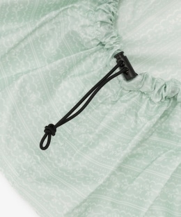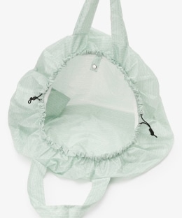 はっ水加工を施した生地を使用しており、大切なバッグを雨から守ってくれるのが便利。開口部はドローコード仕様で、バッグのサイズに合わせて絞り具合を調節できます。持ち手が付いているため、そのままエコバッグとしても使用可能。さらに、自転車の前かごカバーとしても使える仕様です。使わない時はコンパクトに折りたたんで、バッグの中に常備しておけます。雨の日のお出かけや、急な荷物の増加時など、マルチに活躍します。