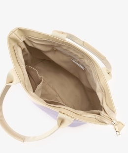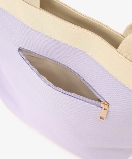 フランスで暮らす日々をイメージした、「MON JOURNAL(モンジャーナル)」シリーズのミニトートバッグです。「Un week-end à la campagne」(田舎での週末)がテーマのカラーリングです。 ラベンダーカラーのバッグ地に合わせて「庭のラベンダー」という意味のタイポグラフィをエンボス加工であしらい、立体感をプラスしました。さり気ない遊び心を感じさせるデザインです。ファスナー付きの間口で中身を隠せるので、プライバシーを守れます。内外にもポケットがあり、大切なものを仕分けて持ち運べるのが便利。マチ幅があるので、ランチボックスやマイボトルをすっきり入れてお使いいただけます。
