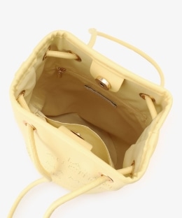 フランスで暮らす日々をイメージした、「MON JOURNAL(モンジャーナル)」シリーズの巾着バッグです。「Un week-end à la campagne」(田舎での週末)がテーマのカラーリングです。 レモンイエローのバッグ地に合わせて、「ママのレモンタルト」という意味のタイポグラフィを、パンチングデザインであしらいました。さり気ない遊び心を感じさせるデザインです。ハンドルの持ち方次第で、手持ちにも肩掛けにもなる2WAY仕様で、自分好みのスタイルで使えるのも魅力。間口は、マグネットボタン付きで、ワンタッチで開閉できます。お財布や手帳、ペットボトル500mLが入るサイズで普段使いにぴったりです。