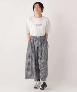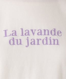 「Un week-end à la campagne(田舎での週末)」をテーマに、胸元にはパープルの文字で「庭のラベンダー」を刺繍しています。背面にはラベンダーのポプリの作り方をプリントし、前後で物語がつながるような、ちょっと遊び心のある仕上がりになっています。ゆったりとしたシルエットかつ心地よい肌当たりのコットン素材で、リラックスして着られる一枚です。